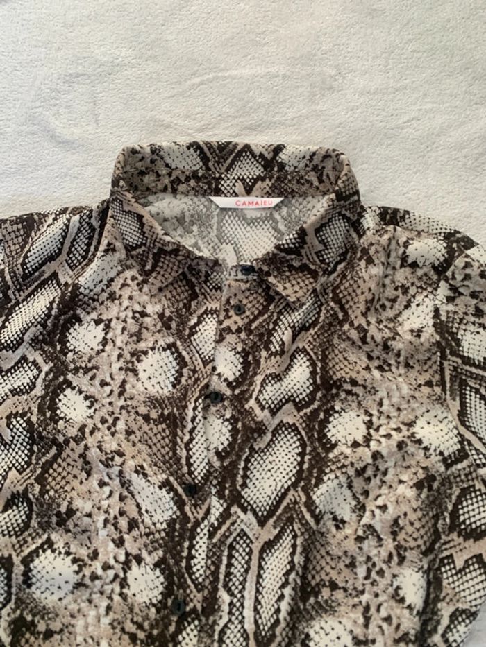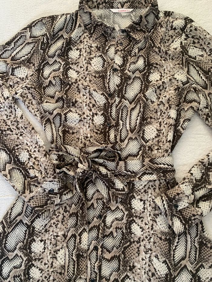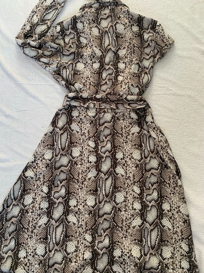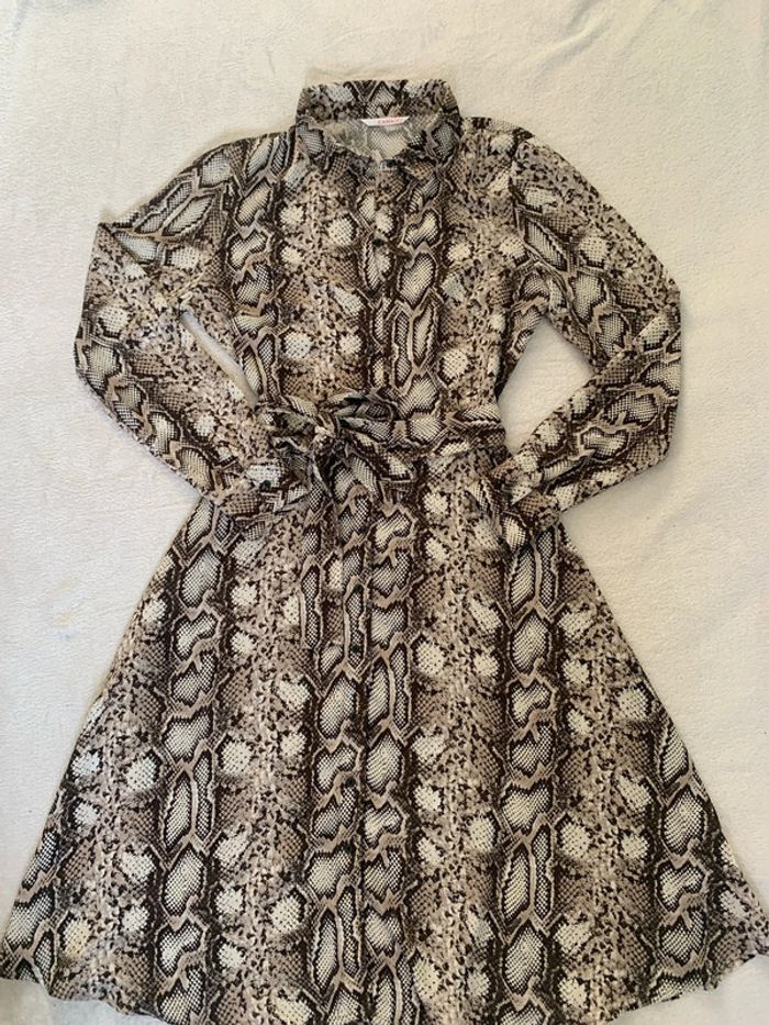 Robe avec ceinture de la marque camaïeu taille 36 composée à 100% polyester Dimensions Longueur des manches 48cm Longueur du col au ba s de la robe 96 cm #robepython #camaieu #taille36