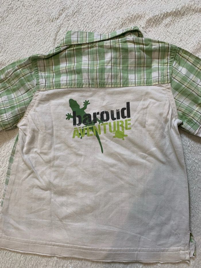 Chemise de la marque petit pirate taille 23 mois composée à 100% de coton Le tissu bouloche un peu #petitpirate #chemise #23mois #23months