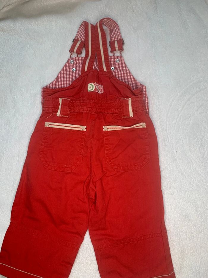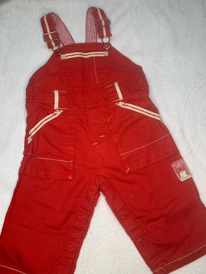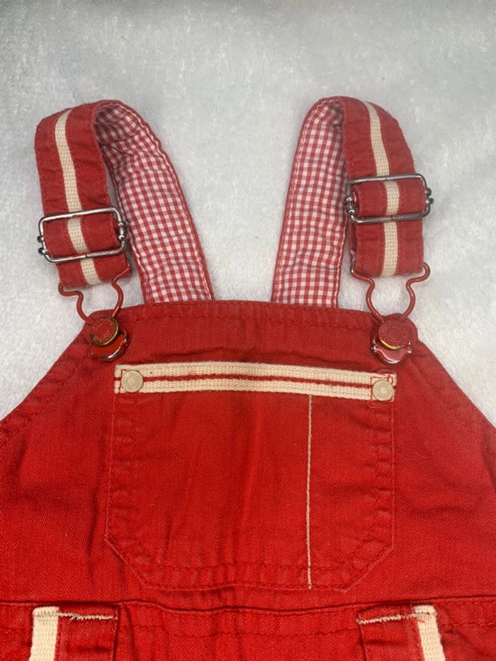 Salopette de la marque sergent major taille 9 mois composée à 100%coton Peinture écaille au niveau de la fermeture en haut voir photo #sergentmajor #salopetterouge #taille9mois#74cm #salopetteencoton