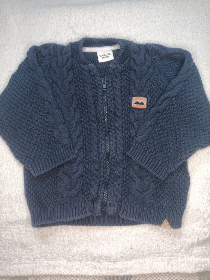 Gilet de la marque tape à l oeil taille 9 mois (71cm) composé à 100% de coton #gilettorsadé #tapealoeil #giletmarine #taille9moisgarcon