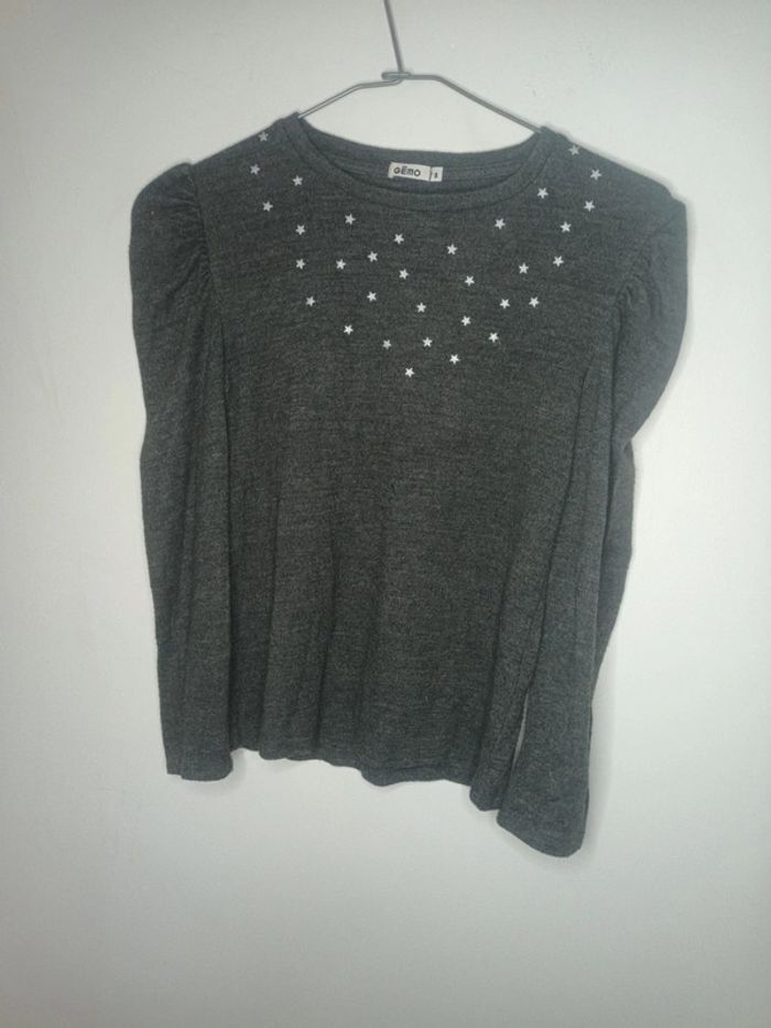Pull de la marque gemo taille 8 ans 75%polyester 21%viscose 4%elasthanne #pullgris #étoiles #8ans #8years #8años