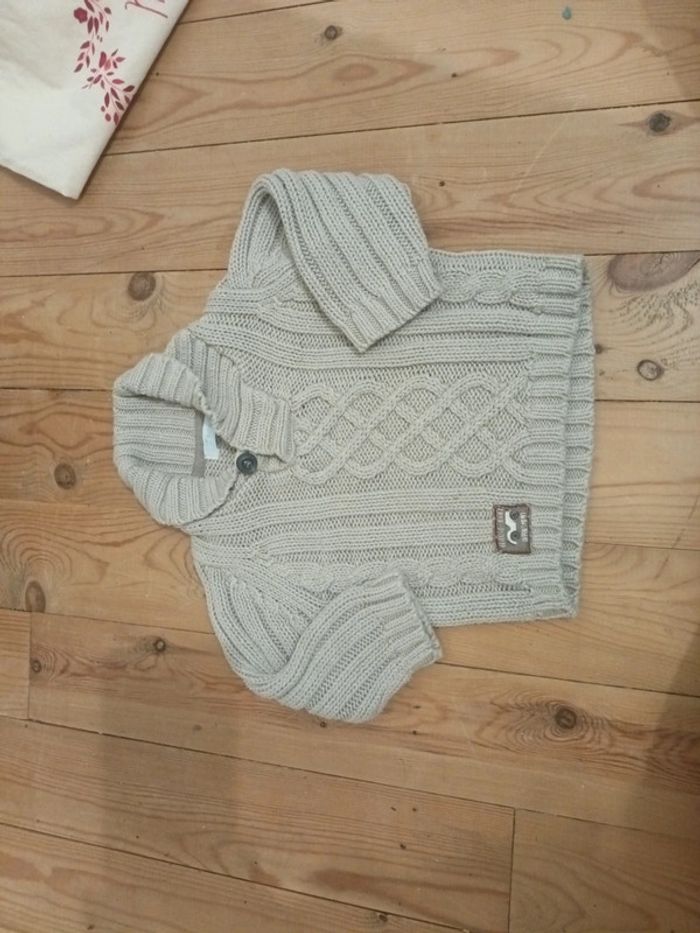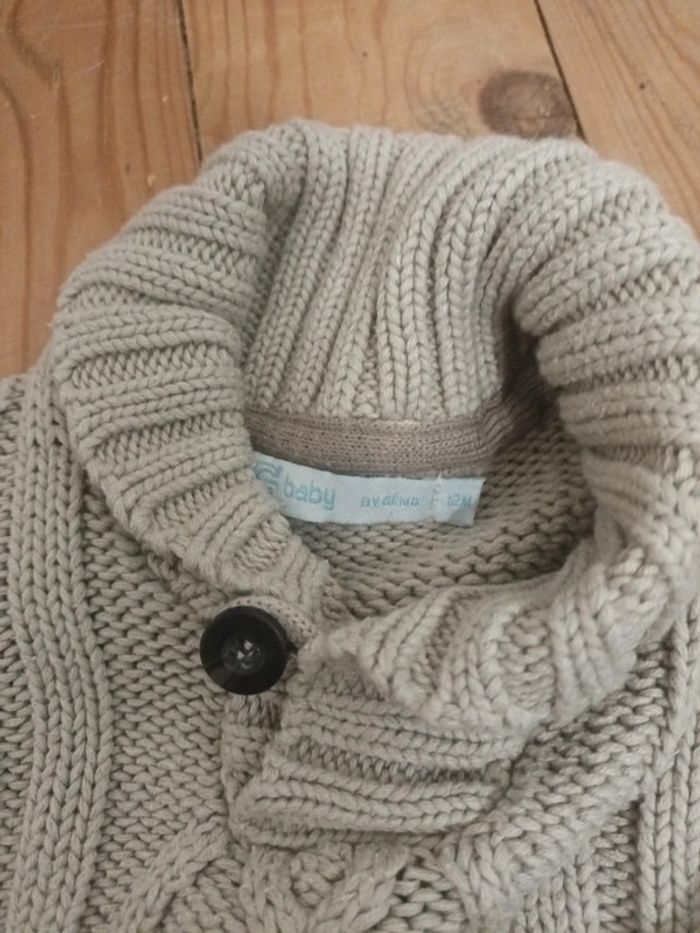 Pull de la marque G baby by gemo taille 12 mois composé à 50% de coton et 50% acrylique #pullmaille #pullgemo12mois #pullbeige12mois