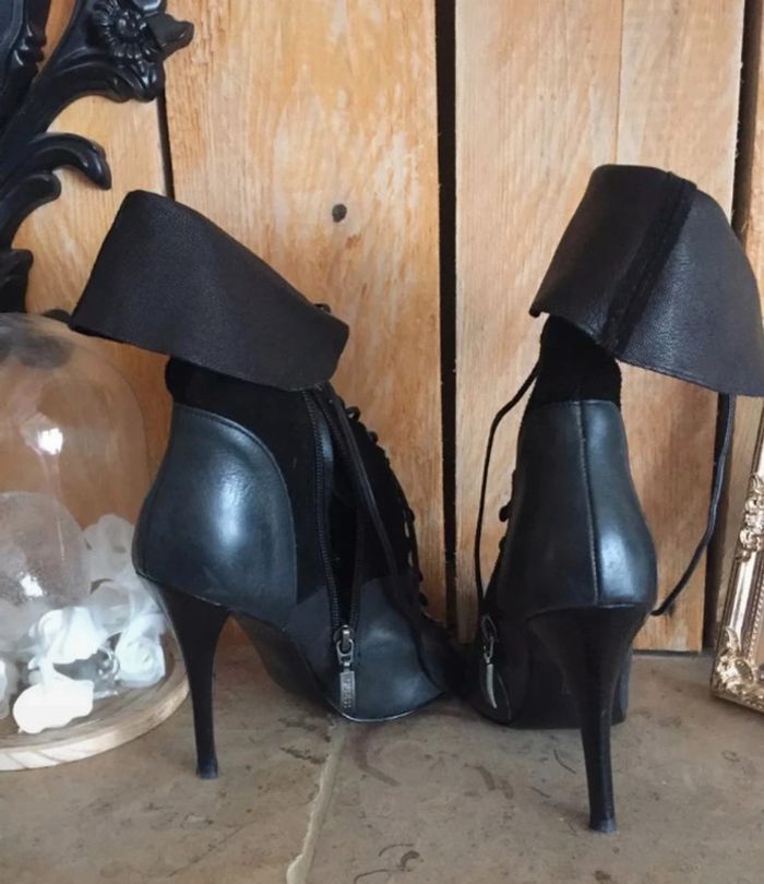 boots à lacets bi-matière guess 36 tbe valeur 120€ #boots #guess #bimatiere #rock #bottines #asos #peeptoe #bottinesalacets