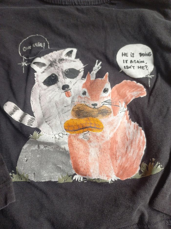 T-shirt à longues manches marron avec un petit écureuil et un raton laveur 😀 Ne sais plus la marque 4ans Lot possible :-5% à partir 3 articles -15%pour 5 articles alors N'hésitez pas a consulter les autres articles en 4 ans en cliquant ici : #fanny61119_fille_4ans #4ansfille #4ans #tshirt #écureuil #automne #mancheslongues