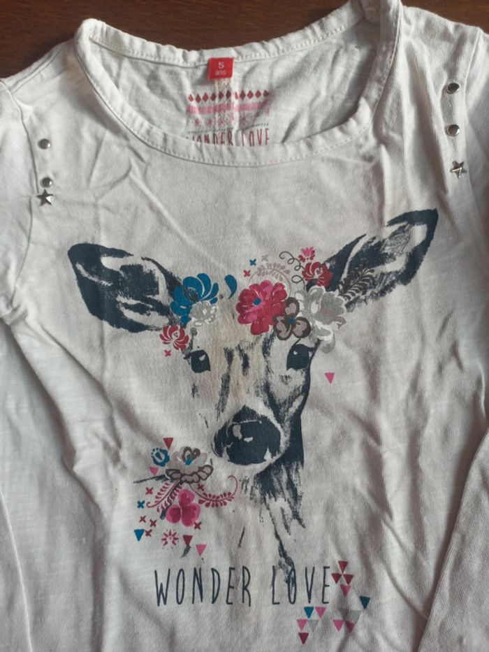 T-shirt blanc à manches longues imprimé biche avec couronne de fleurs 🌸 Tissaia 5ans Lot possible :-5% à partir 3 articles -15%pour 5 articles alors N'hésitez pas a consulter les autres articles en 5 ans en cliquant ici : #fanny61119_fille_5ans #tissaia #tshirt #5ansfille #5ans #tshirtfille