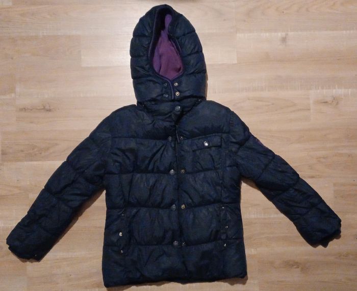 Capuche amovible avec une fermeture éclair,entièrement doublée en polaire. Notée bon état car couture à faire dans le bas de la fermeture éclair et au niveau de la poche intérieure (voir 2 dernières photos) #clo7721_fille10ans