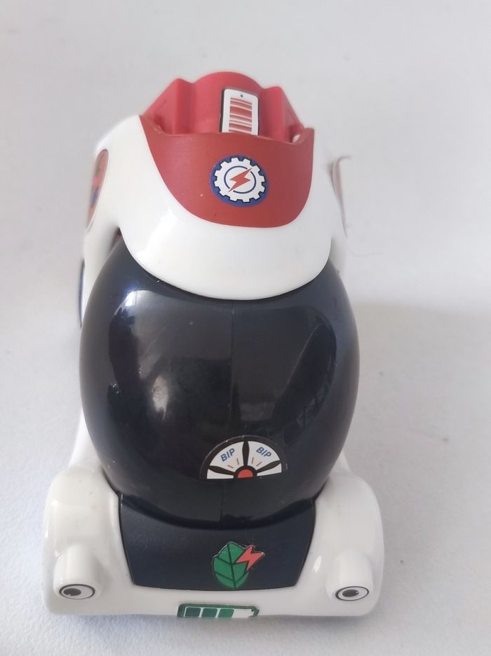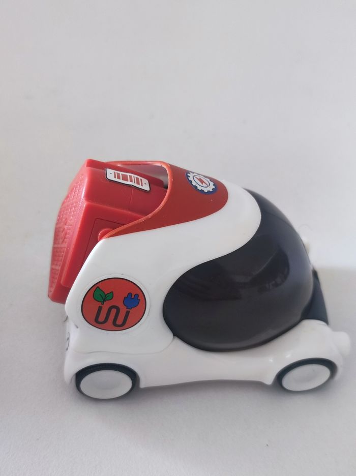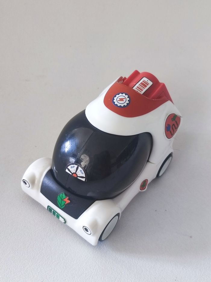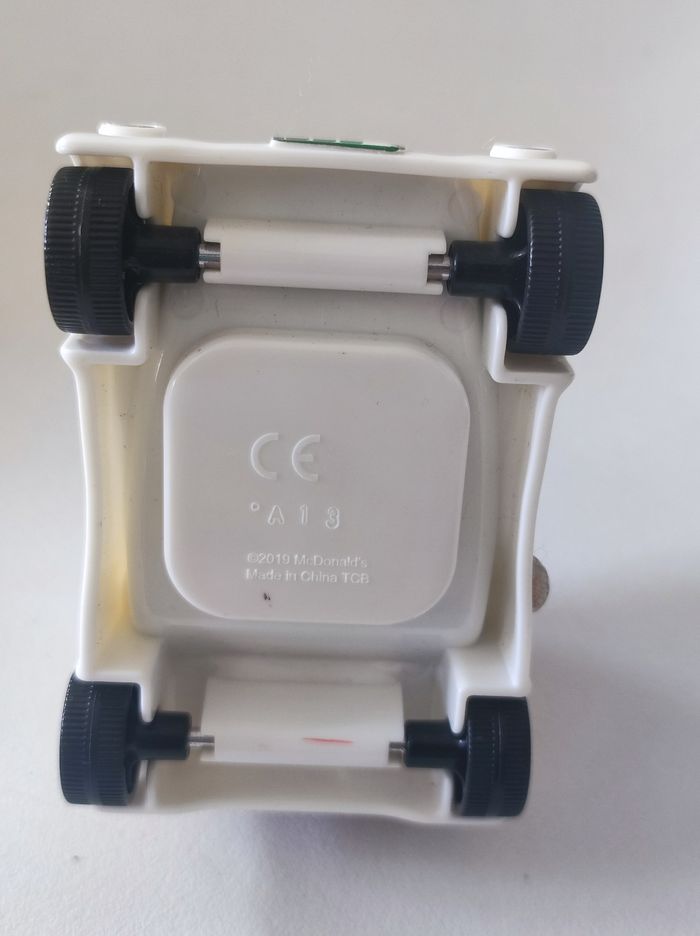 Jouet Voiture série 'les voitures du futurs Mac Donald's (mac do) / happy meal 2019 Voiture a construire ( en 4 éléments ) en mode Lego. En plastique. Dimension monté : 9 cm longueur , 6 cm de largeur et 6 cm de hauteur Couleurs blanc et noir avec petits stickers colorés. Parfait état.