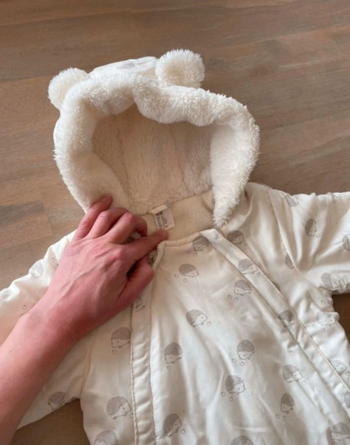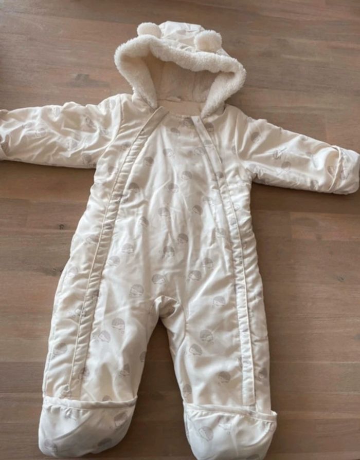 Manteau combinaison bébé Très peu porté Polaire à l’intérieur Deux zip devant très pratique Moufles pieds et mains
