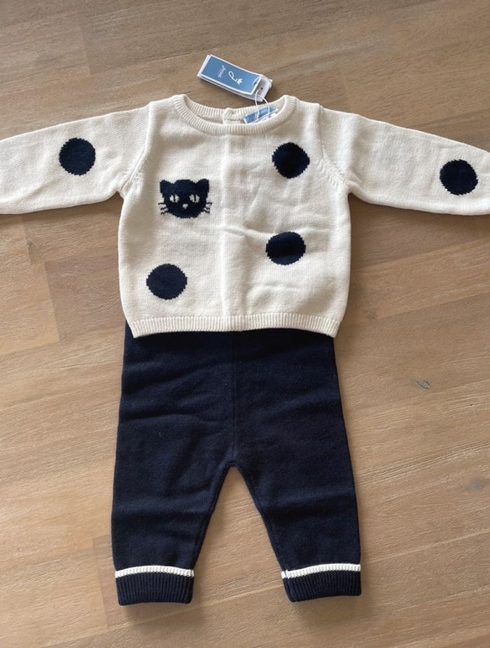 Ensemble en laine mixte Taille 12 mois 6 mois sur la photo mais je l’ai échangé en 12 mois. Il n’est pas neuf, a été porté 2 fois, il s’agit de la photo lors de l’achat.