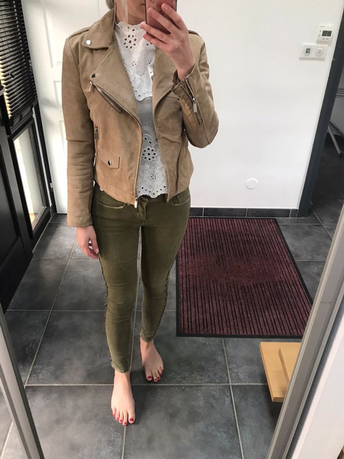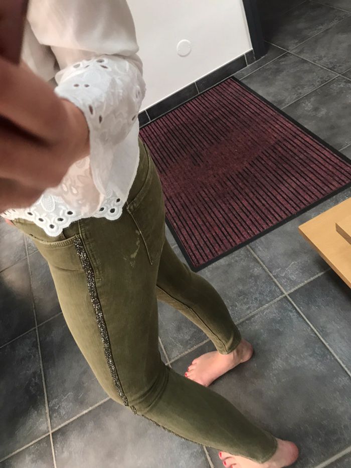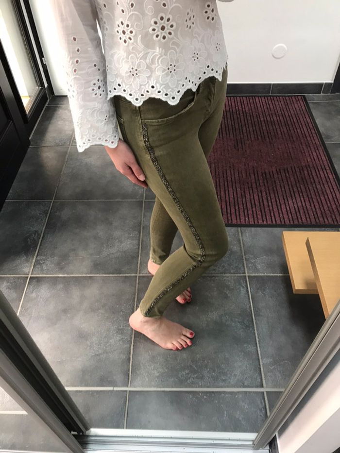 jean kaki Zara avec strass sur les côtés porté deux fois a un petit défaut : tache de photo très confortable à porter