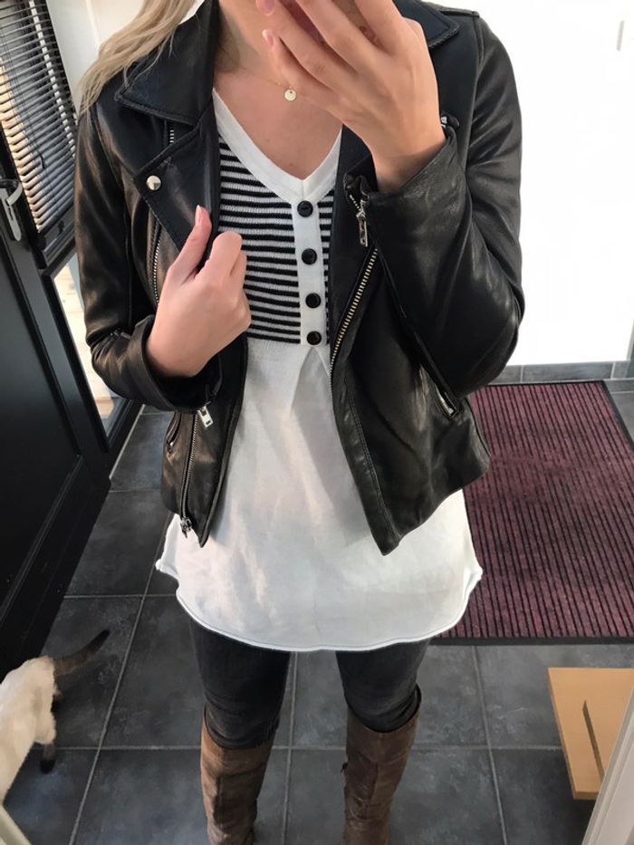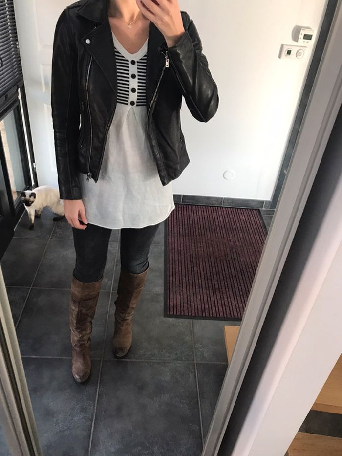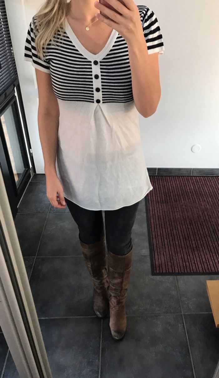 Tunique haut marinière taille 34/36 mais peut également convenir à un 38 comme sur la photo