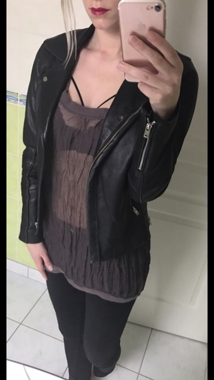 Haut sisley de couleur marron Assez transparent donc prévoir de mettre un débardeur dessous ou pas