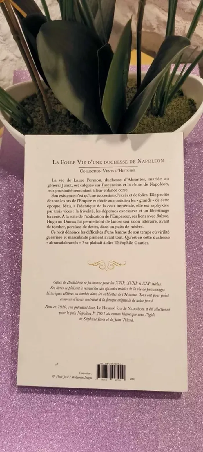 La vie de Laure Permon, duchesse d'Abrantès, mariée au général Junot, est calquée sur l'ascension et la chute de Napoléon, leur proximité remontant à leur enfance corse. Son existence n'est qu'une succession d'excès et de folies. Elle profite de tous les ors de l'Empire et côtoie au quotidien les "grands" de cette époque. Mais, à l'identique de la cour impériale, elle est asphyxiée par trois vices : la frivolité, les dépenses excessives et un libertinage forcené. A la suite de l'abdication de l'Empereur, ses liens avec Balzac, Hugo ou Dumas lui permettront de lancer son salon littéraire, avant de tomber, percluse de dettes, dans un puits de misère. Ce récit dénonce les difficultés d'une femme de son temps où virilité guerrière et masculinité priment avant tout. Qu'est-ce cette duchesse "abracadabrantes" ? se plaisait à dire Théophile Gautier. Biographie: Issu d'une ancienne famille bretonne, Gilles de Becdelièvre est passionné par les XVIIe, XVIIIe et XIXe siècles. Ecrivain "d'histoires de l'Histoire", il ressuscite des épisodes inédits de la vie de personnages historiques. Ses livres mettent en exergue des personnalités célèbres ou inconnues, parties prenantes de notre histoire. Tous ont pour point commun d'avoir contribué à la fresque originelle et indestructible de notre passé.