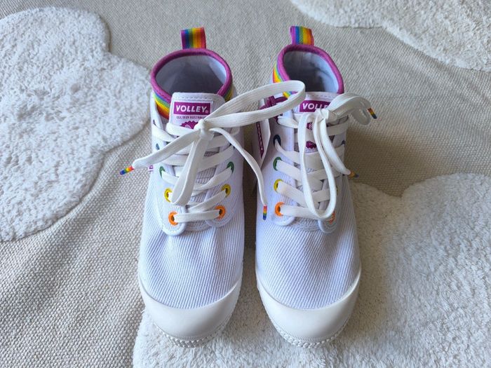 🍂Article : chaussures a lacets édition rainbow 🍄État : neuf 🍁 Marque: volley 📏Taille : 39 🪡Matière et mesures: (sur demande) 🚭Maison NON fumeur 🤎Pas de surprise caché, vous recevrez ce que vous commandez, tout les défauts son dans les photos ou dans le descriptif 📦Envoie rapide et soigné, je fais des envois 2 ou 3 fois par semaine, du mardi au samedi ❔Si vous avez des questions n'hésitez pas à les poser je répondrai dans les plus brefs délais 🧺Tout les vêtements sont lavés, sèches a l'aire libre pas de sèche linge, repassé, puis stocke a l'abri de l'humidité. Pour trouver plus d'articles dans cette catégorie /taille cliquez sur le lien ci-dessous #ecirdney_chaussures