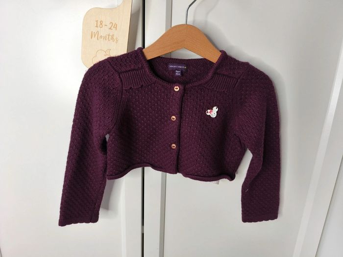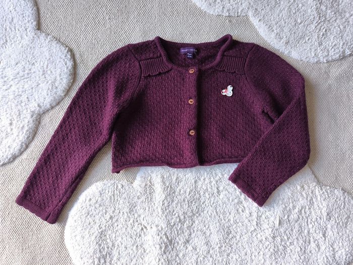 🍂Article : cardigan court de couleur grenat est en maille fantaisie, pour un rendu raffiné et original. Très girly, il possède de petits volants aux épaules pour donner du volume. Adorable, un badge en métal en forme de souris est présent au niveau de la poitrine. Un vêtement facile à accorder à une robe ou une chasuble. Ouverture sur le devant par des boutons en métal effet cuivré 🍄État : très bon état 🍁 Marque: sergent major 📏Taille : 24 mois 🪡Matière et mesures: (sur demande) 🚭Maison NON fumeur 🤎Pas de surprise caché, vous recevrez ce que vous commandez, tout les défauts son dans les photos ou dans le descriptif 📦Envoie rapide et soigné, je fais des envois 2 ou 3 fois par semaine, du mardi au samedi ❔Si vous avez des questions n'hésitez pas à les poser je répondrai dans les plus brefs délais 🧺Tout les vêtements sont lavés, sèches a l'aire libre pas de sèche linge, repassé, puis stocke a l'abri de l'humidité. Pour trouver plus d'articles dans cette catégorie /taille cliquez sur le lien ci-dessous #ecirdney_24mois #ecirdney_2ans #ecirdney_sergentmajor
