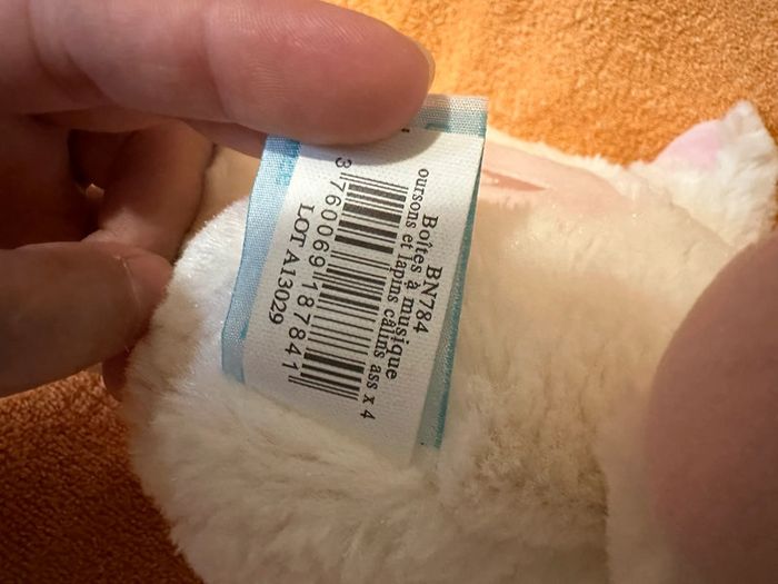 Peluche musical lapin blanc et rose, marque Baby Nat - photo numéro 8