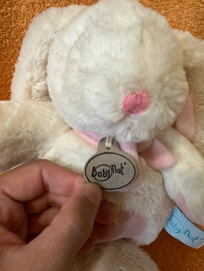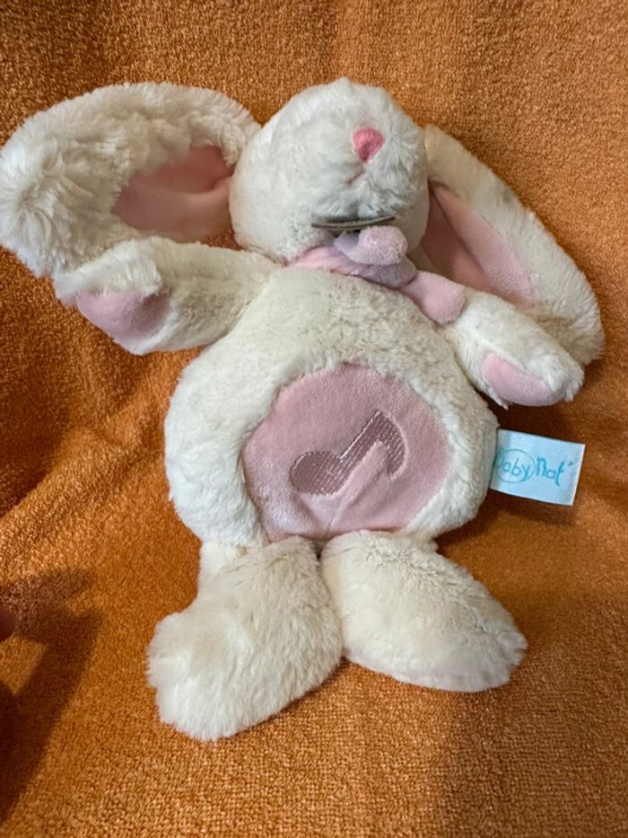 Peluche musical lapin blanc et rose, marque Baby Nat