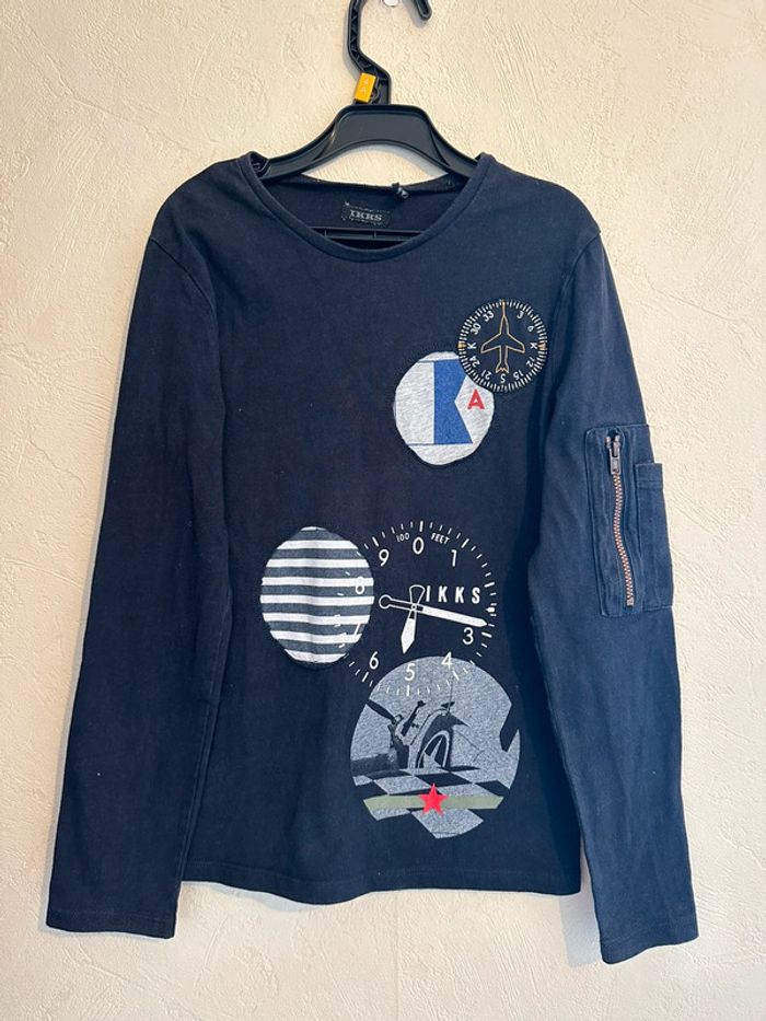 T-shirt noir en coton manches longues garçon 10 ans IKKS - photo numéro 1