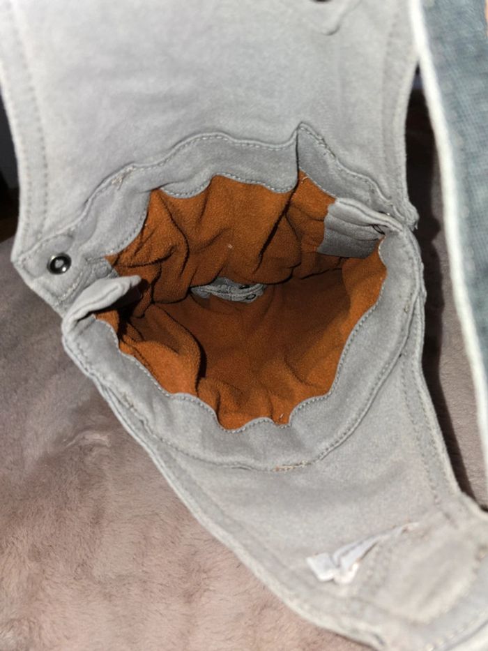 Une éraflure sur photo 3 mise a part ca en en très bon état Tiens tres chaud Réglable en hauteur Taille 12 mois
