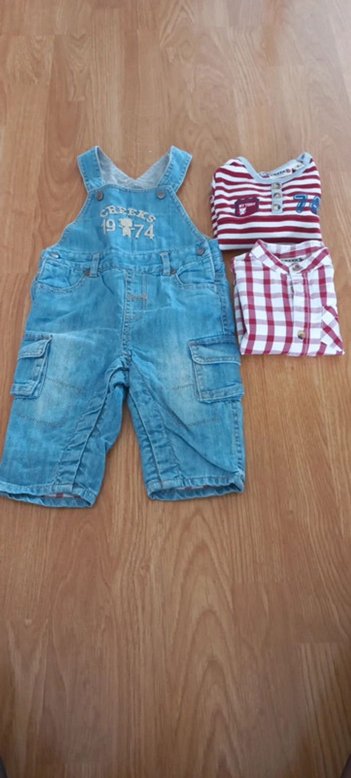 Lot de 3 articles - 1 salopette - 1 chemise manches longues - 1 body manches longues Taille 9 mois Marque Creeks #nanadoucik_garçon9mois