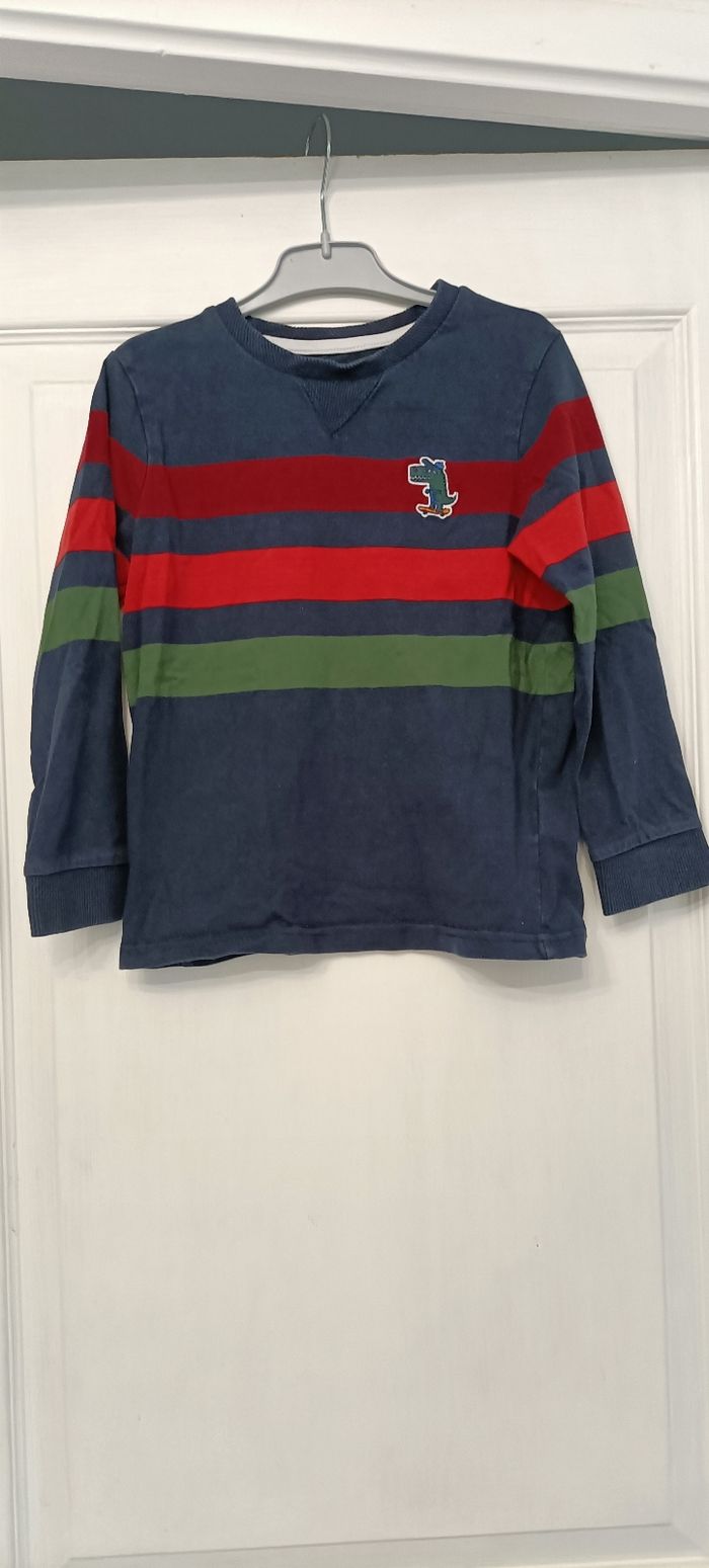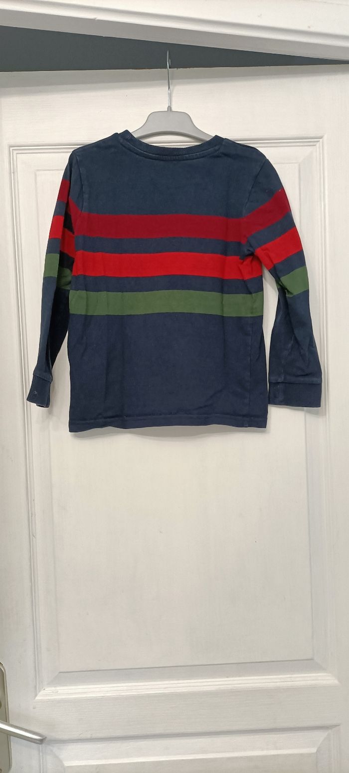 Haut manches longues, bleu marine avec rayures rouge, orange et verte. Taille 8 ans, de marque Verbaudet, en très bon état. 3€