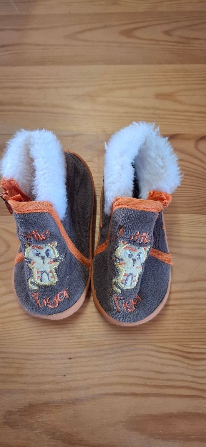 #loluxiagarconchaussures Fermeture eclair Marron, orange et blanc Qq défauts des l achat, ne gênent en rien l'usage = qq résidus plastiques sur le tissus. Cf photos Motif : little tiger