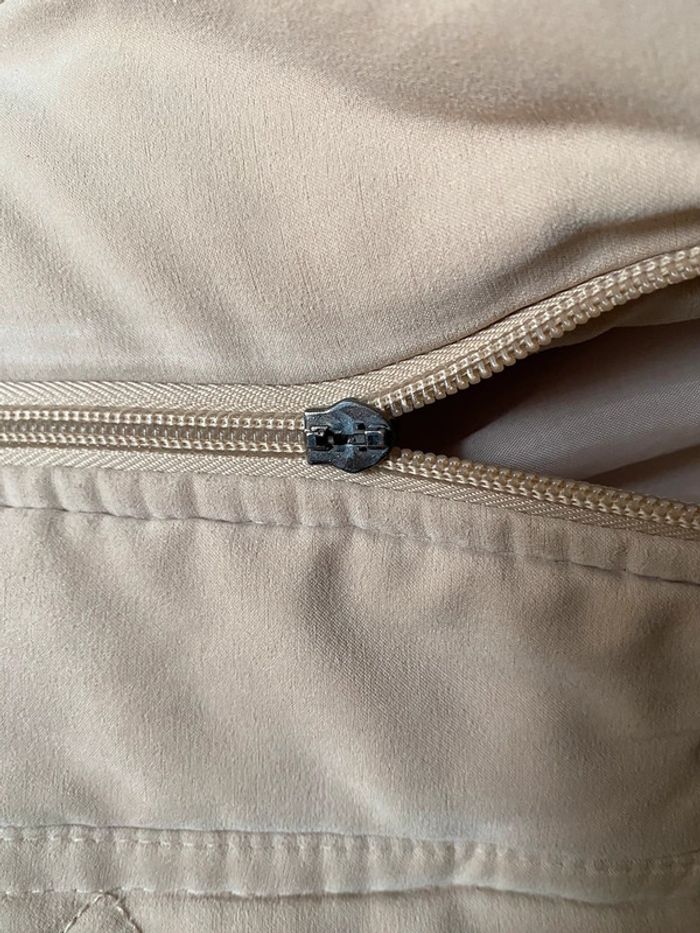 Manteau 3/4 tissu matelassé peau de pêche doublé avec col montant Taille 36 fermeture éclair fonctionne mais il n’y a plus la tirette voir photo Double fermeture avec des boutons pression 2 poches extérieur 1 poche intérieur