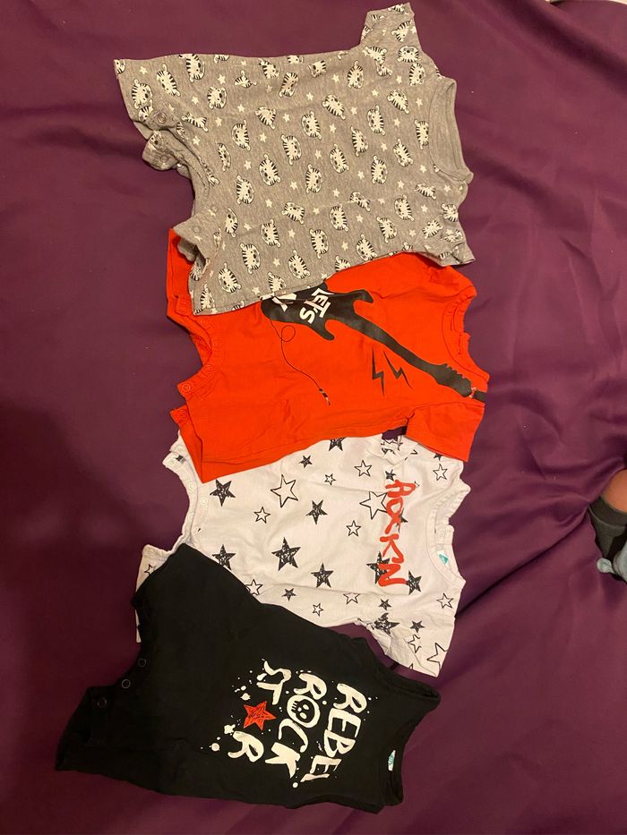 4 bodys manches courtes habillé 1€ pièce / 3€ le lot Possibilité de faire des lots avec d’autres articles (contactez moi par message)
