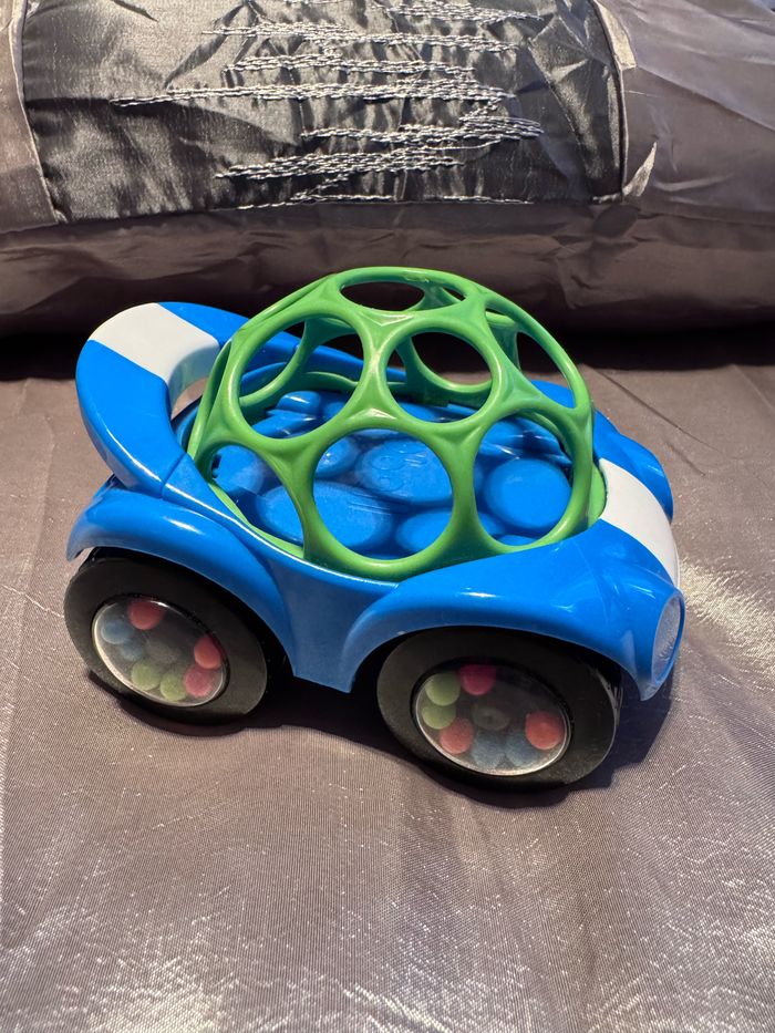 La voiture Oball est l'une des premières voitures de l'enfant. Il l'attrape par le toit, souple et flexible. Lorsqu'il la manipule ou la fait rouler, il entend et voit les billes de couleur tourner dans les 2 roues avant. Cette voiture Oball l'encourage à se déplacer.