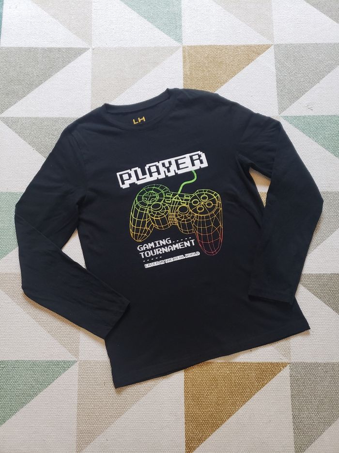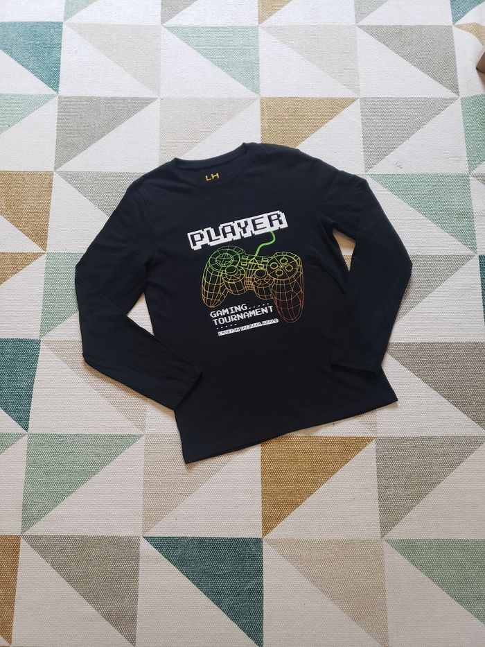 NEUF jamais porté 🏷 Marque "La Halle / LH" Thème sur les jeux vidéo Taille 13 ans / 156 cm / XS Tshirt manches longues en coton noir