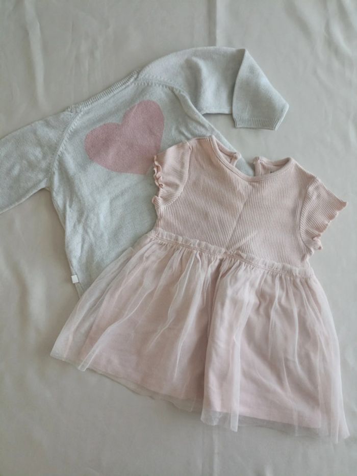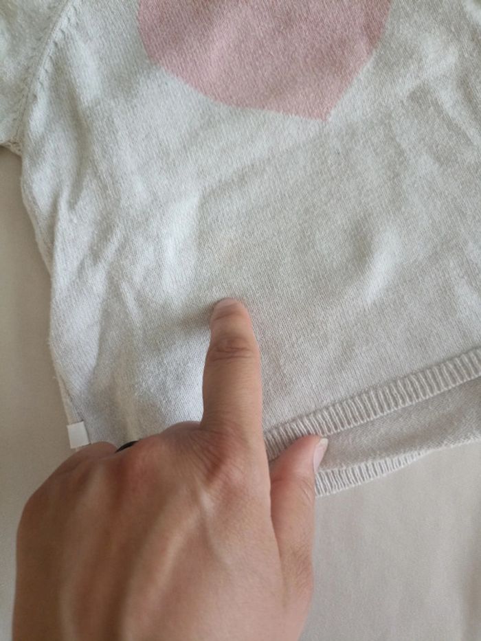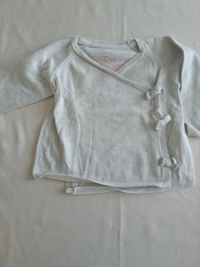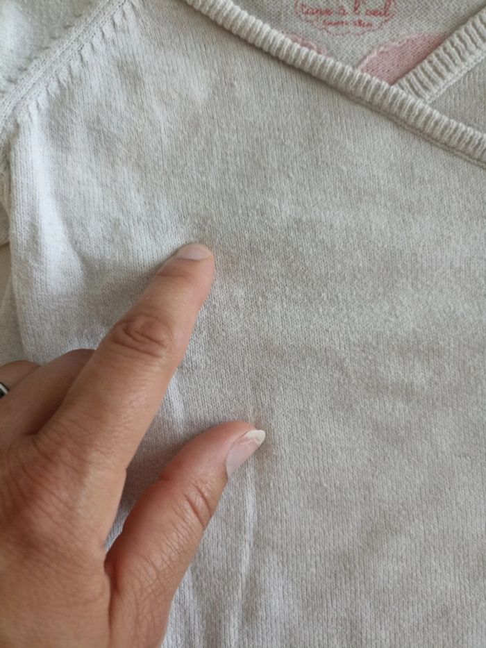 Ensemble, taille 6 mois, en bon état, marques peu visibles, le gilet a des petites Bouloches moins visibles que sur la photo #6moismarylinebonte