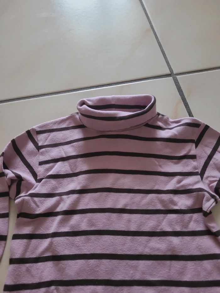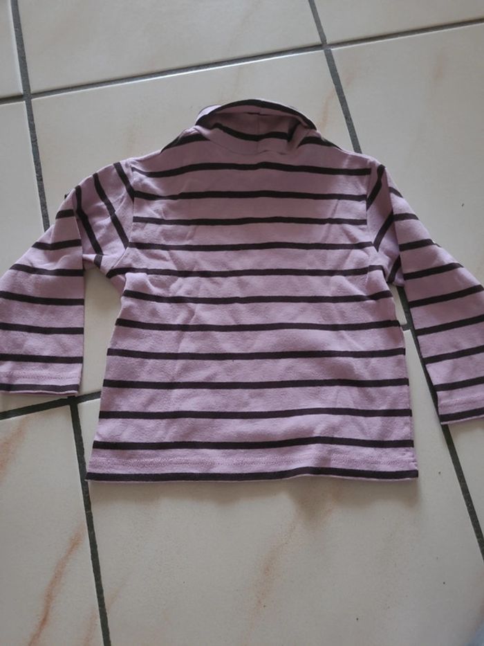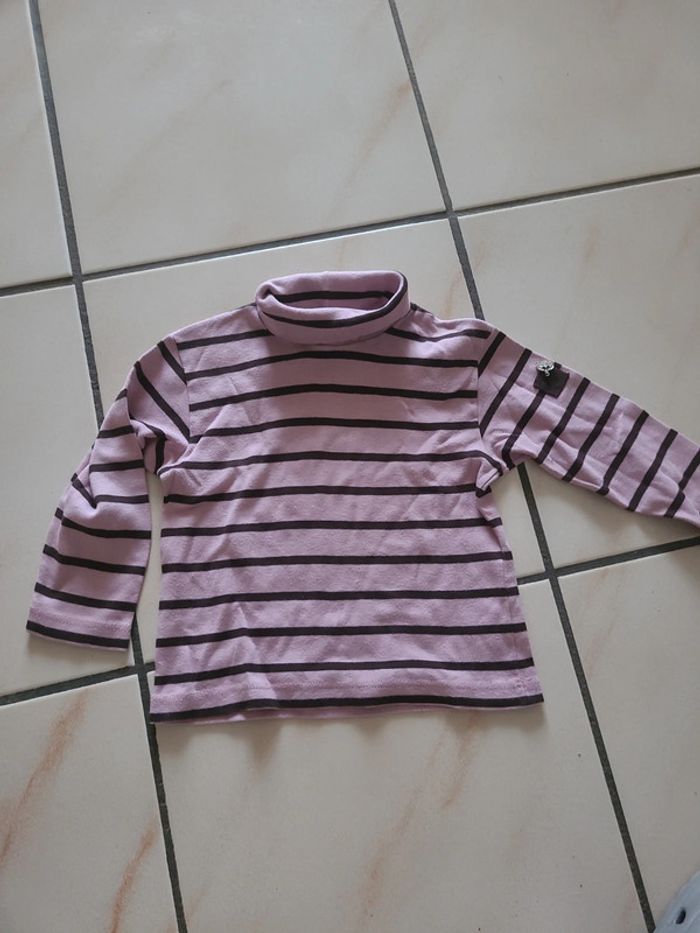 Tee shirt manches longues rayé rose/lila et noir, avec col roulé, LE PHARE DE LA BALEINE Taille 3 ans