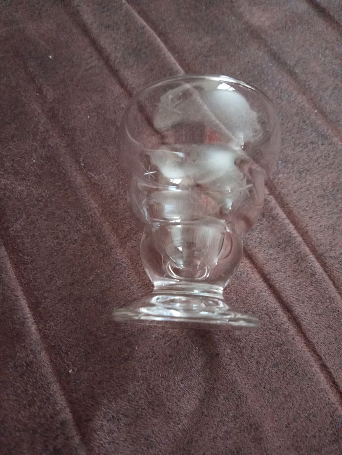 Ensemble de 8 petits Verres à Digestif à pied Dimensions: environ Hauteur 5cm - Diamètre 3,8cm Couleur: Transparent avec motifs étoilés Petit côté vintage Petits Verres en parfait état, vendus comme sur les photos