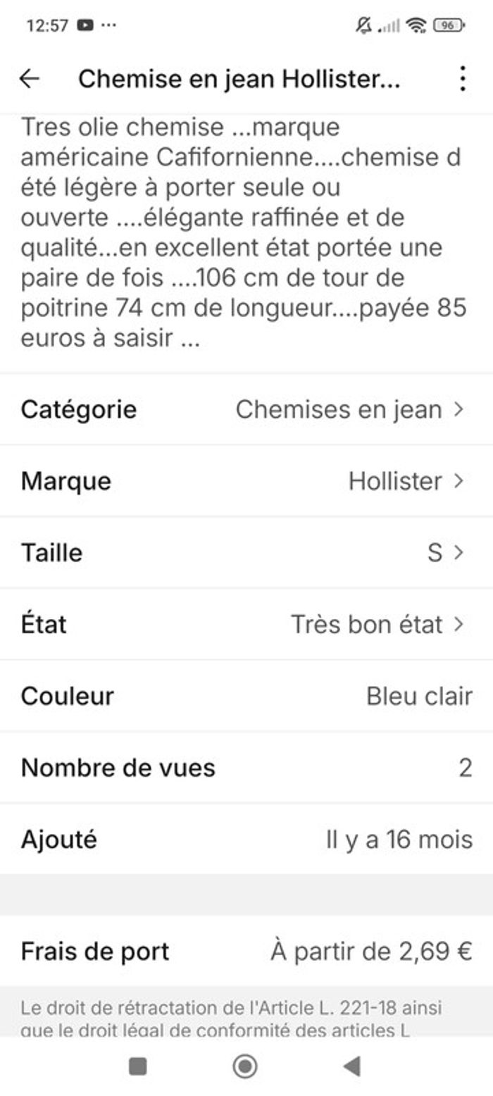 Chemise en jean Hollister S - photo numéro 13