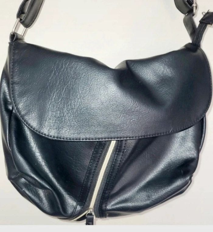 Bandoulière ajustable.interieur tissu avec une pochette.exterieure pochette zippée. 31 cm par 25cm de hauteur.