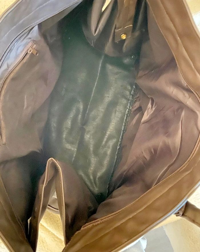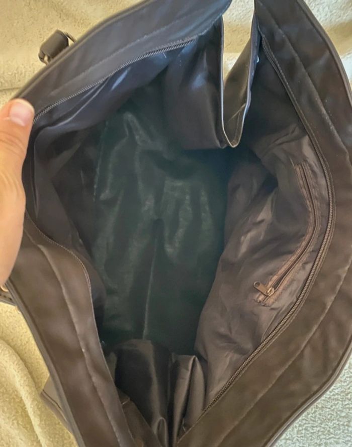 . Pas d envoi vinted go ! Sac en très bon état Couleur marron bordeaux .50 cm de longeur sur 34 cm de hauteur. Fermeture éclair centrale .intérieur nickel avec une pochette zippée.