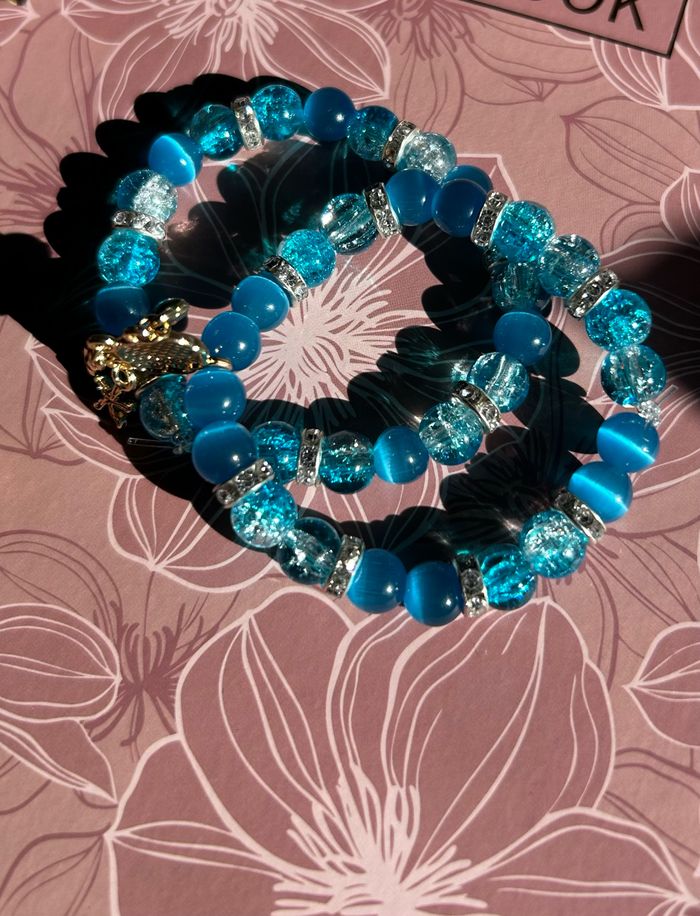 Ce bracelet bleu aux perles délicates est sublimé par un pendentif méduse bleu à la finition irisée, capturant la lumière avec de magnifiques reflets. Son design marin et élégant ajoute une touche de mystère et de raffinement, parfait pour apporter une note originale et colorée à vos looks. Confectionné avec soin, il incarne à la fois la fluidité et la beauté de l'océan.