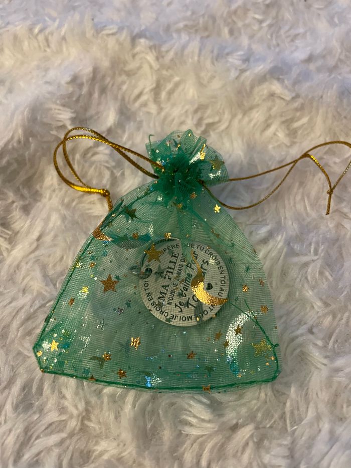 Porte clé pour sa fille avec petit message et trèfle à 4 feuilles pour porter bonheur dans son pochon cadeau, possibilité de graver l’arrière, neuf #sandra13190chapeau_accessoire_bijoux_sac