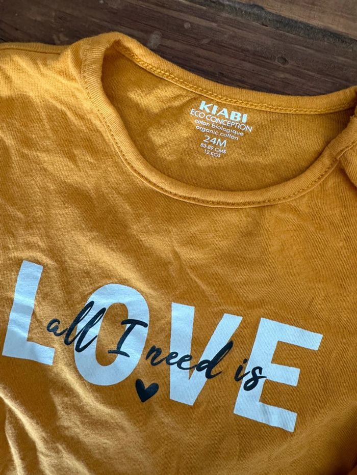 Bonjour 🤗 Vends ensemble tee-shirt + pantalon, en taille 24 mois, de chez Kiabi (haut) et Orchestra (bas) En bon état, mais le tee-shirt est décousu sur le côté, à réparer.🌸 #maurannejacquettaille24mois Réduction sur lot.
