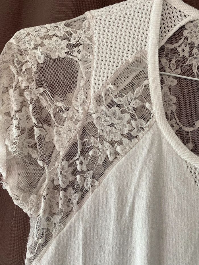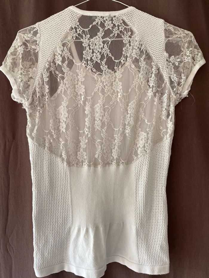 Bonjour 🤗 Vends tshirt blanc à dentelle, taille M mais je penses qu’il irai plus à un S, de chez Morgan. En bon état, quelques petites imperfections. 🌸 #maurannejacquetailleS #maurannejacquetailleM