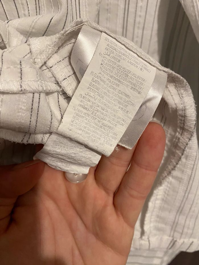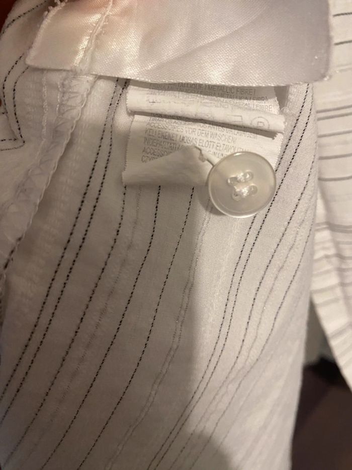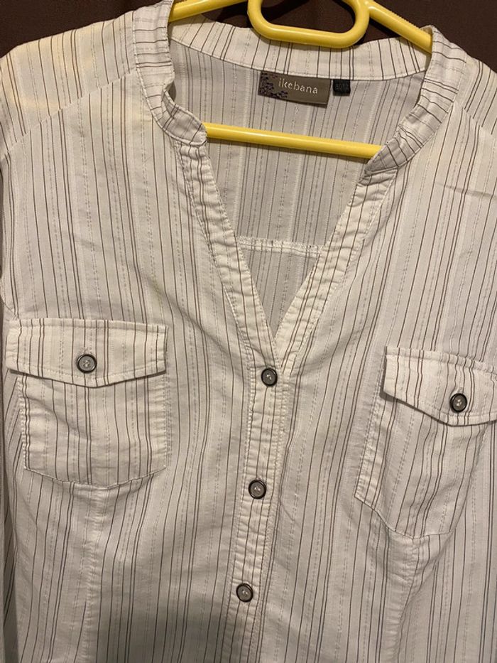 Bonjour 🤗 Vends blouse à rayures manches 3/4, taille 50/52 de chez Ikebana. Les manches peuvent se replier et s’attacher. Vendu avec 1 bouton de rechange. 50% de coton. En très bon état. 🌸 #maurannejacquettaille5XL