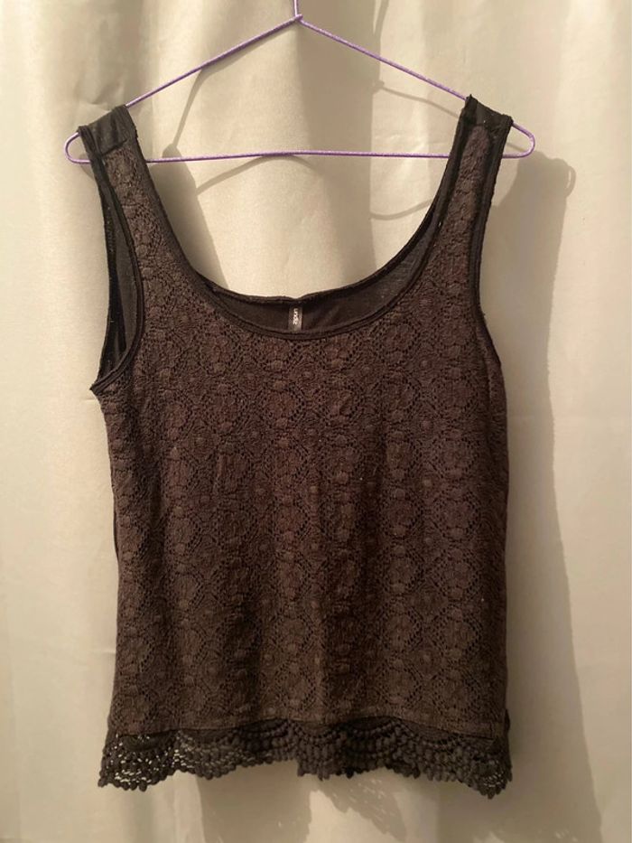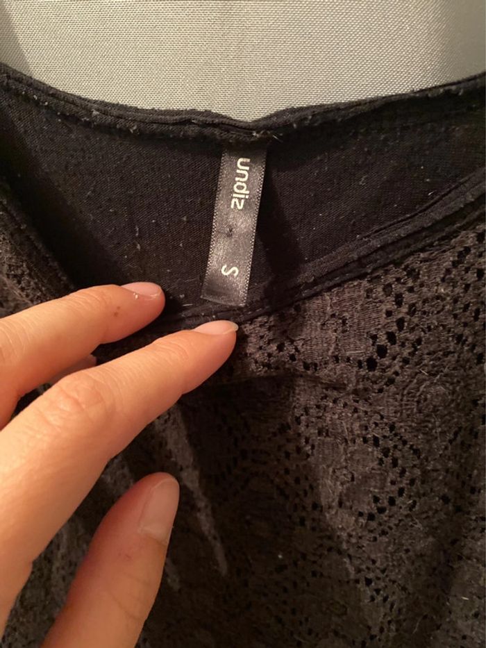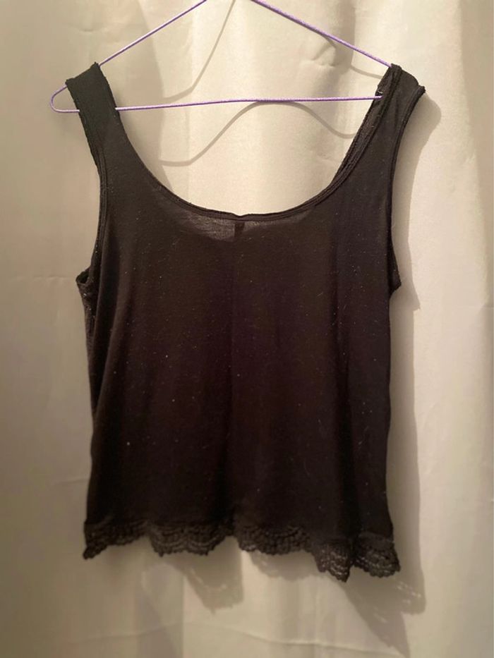 Bonjour, Vends petit débardeur avec dentelles sur le devant, de couleur noir. Il vient de chez Undiz. Taille S (peu aller largement à un XS). Bon état (un coup de rasoir électrique spécial bouloches sera passé avant l’envoi pour qu’il paraisse comme neuf). 🌸 #maurannejacquettailleXS #maurannejacquettailleS