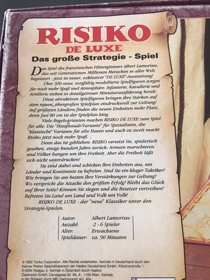 Jeu de société risiko de luxe parker complet pas en français Boîte abîmée déchirée Envoi rapide #risikodeluxe