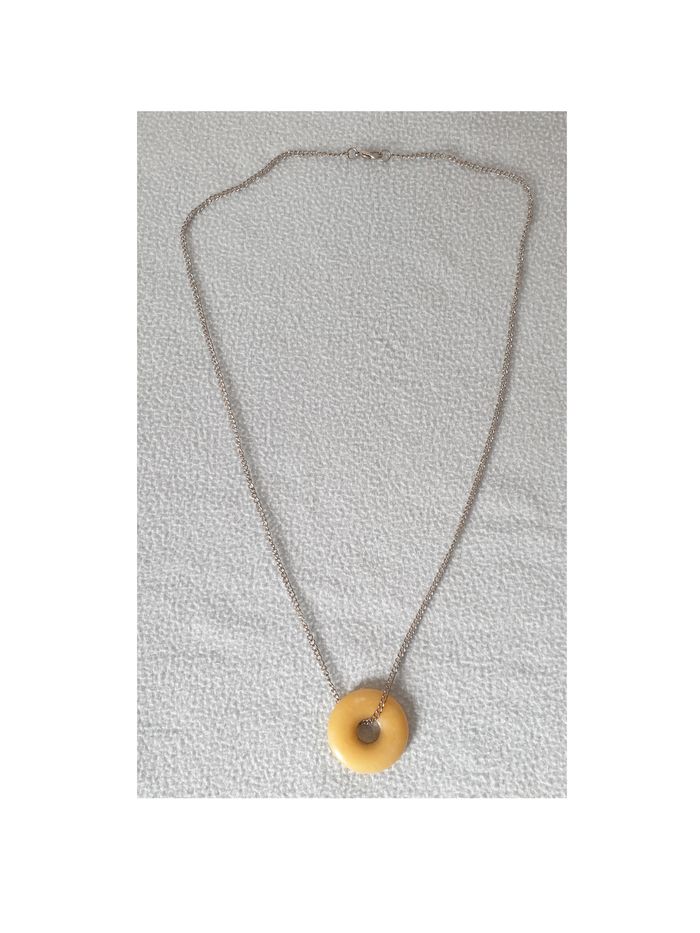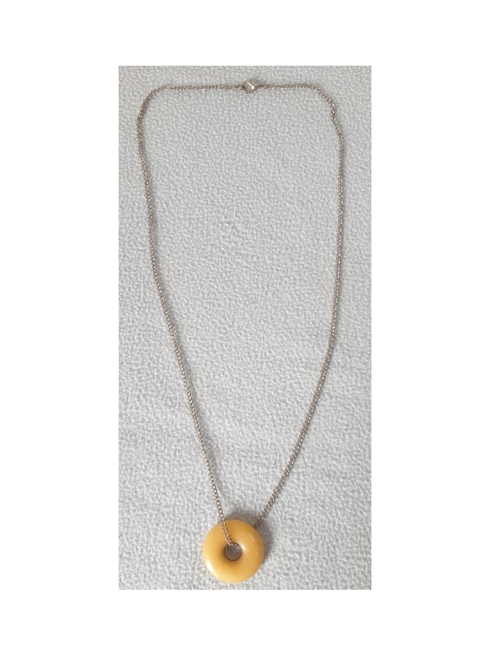 Collier. Collier fantaisie argenté avec pendentif pierre jaune. Longueur : 32,5 cm En bon état. 1€. #vero38110bijoux