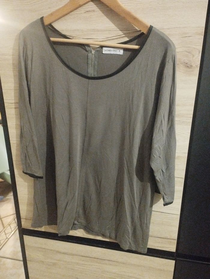 Blouse manches 3/4 kaki et finitions noires taille 42 - photo numéro 1