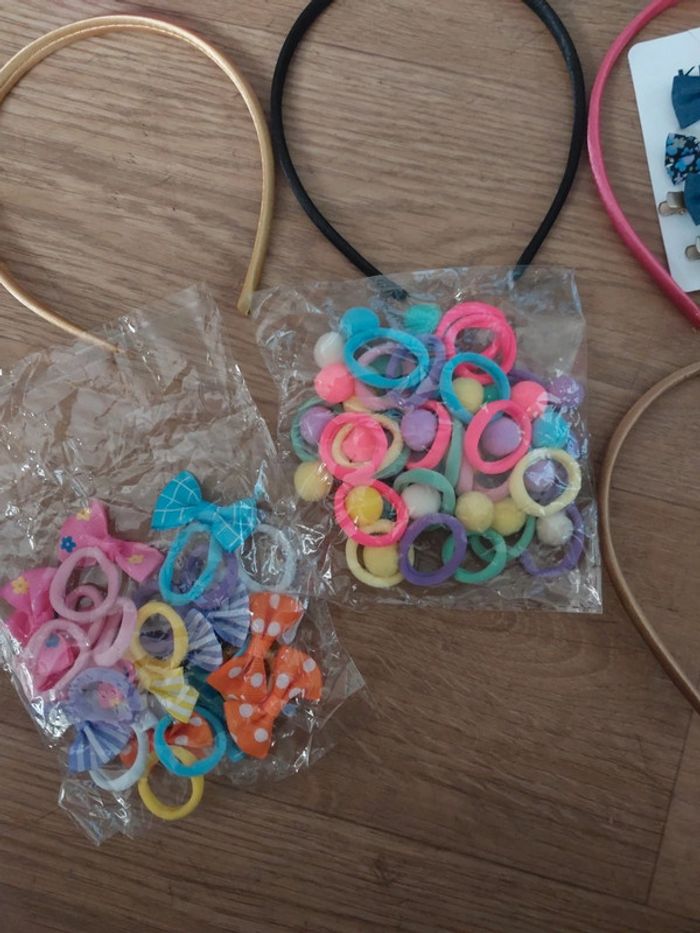 10 serre tête Lot de chouchou nœud Lot de chouchou pompon Pince nœud Le tout est neuf jamais utilisé