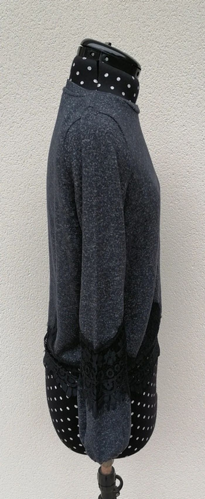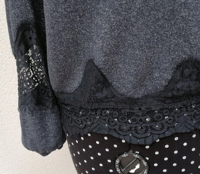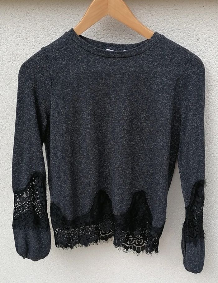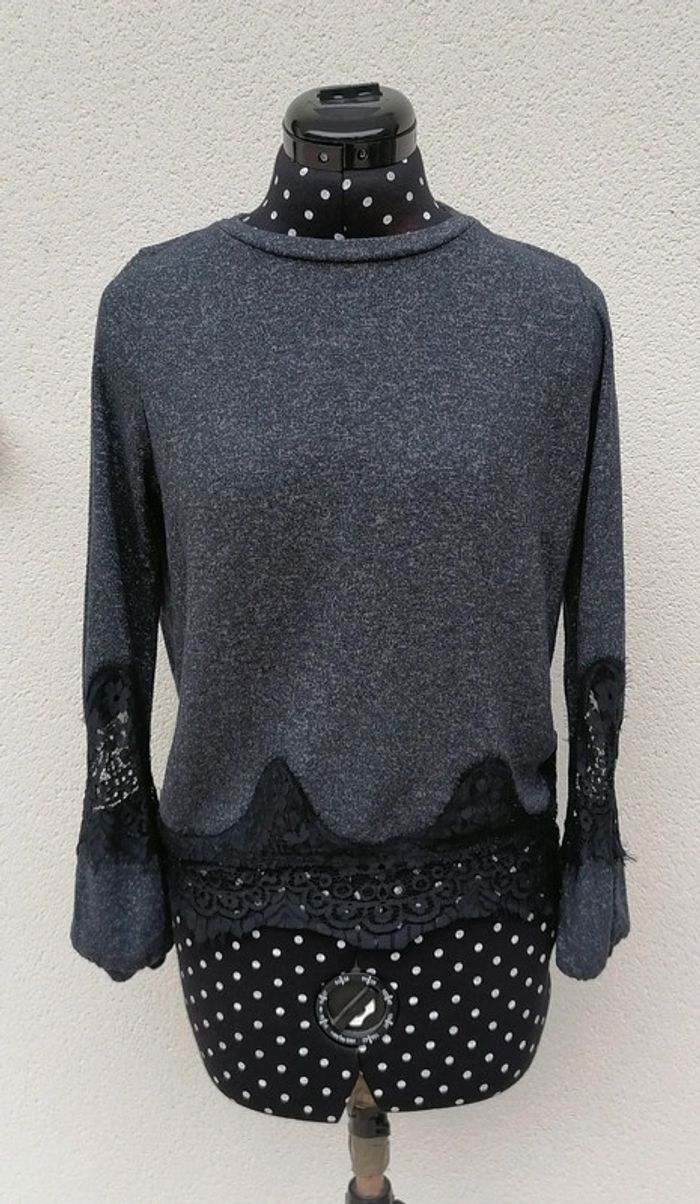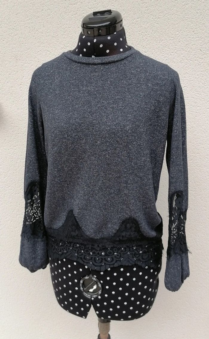 Pull léger mailles noir bleu dentelle Taille M Nafnaf - photo numéro 7