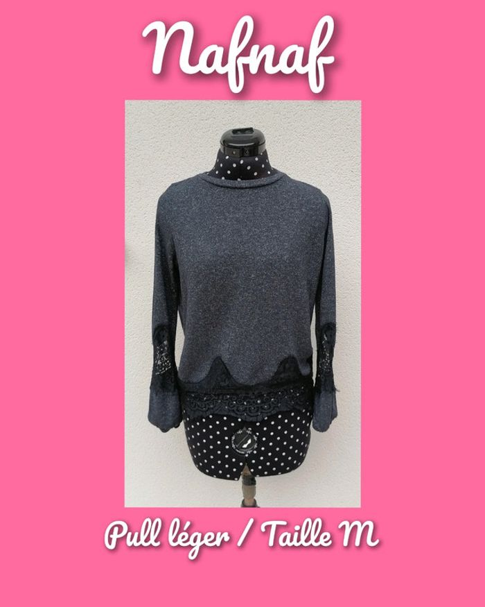 Pull léger mailles noir bleu dentelle Taille M Nafnaf