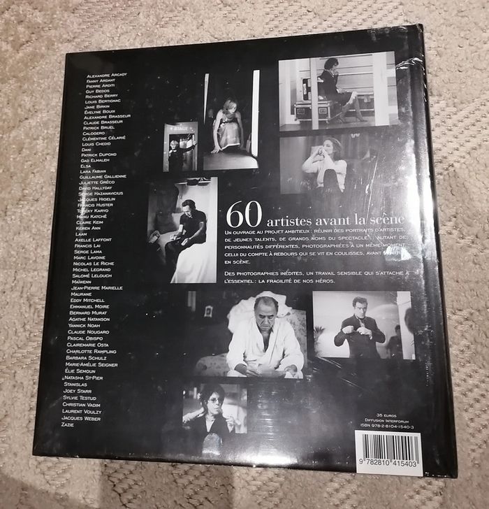 Des photographies exceptionnelles d'artistes français saisis quelques minutes avant d'entrer en scène. Chanteurs, acteurs, danseurs livrent dans cet ouvrage des moments d'intimité rares, instants volés, témoignages de leur vérité avant le show. Plus de 60 comédiens et chanteurs français célèbres – tels que Louis Bertignac, Jane Birkin, Guillaume Gallienne, Juliette Greco, Gad Elmaleh, Yannick Noah, zazie et bien d'autres encore – sont furtivement capturés par la photographe Joanne Azoubel quelques instants avant d'entrer en scène. Ces portraits vibrent de trac et de concentration palpables. Moment fugitif où l'artiste ne s'appartient plus, et se tourne entièrement vers la scène et le public. Éditeur‎ Editions Prisma Relié‎ 219 pages Poids : 1,82 Kg Dimensions‎ : 28.5 x 2.4 x 30.9 cm Prix d'achat : 35€ 🌟 Neuf sous blister 🌟 ⏩ Tous mes livres #bizs33livre #bizs33 #bizs33livre #bizs33loisirs #livre #artistes #scene #chanteur #acteur #spectacle #coulisses