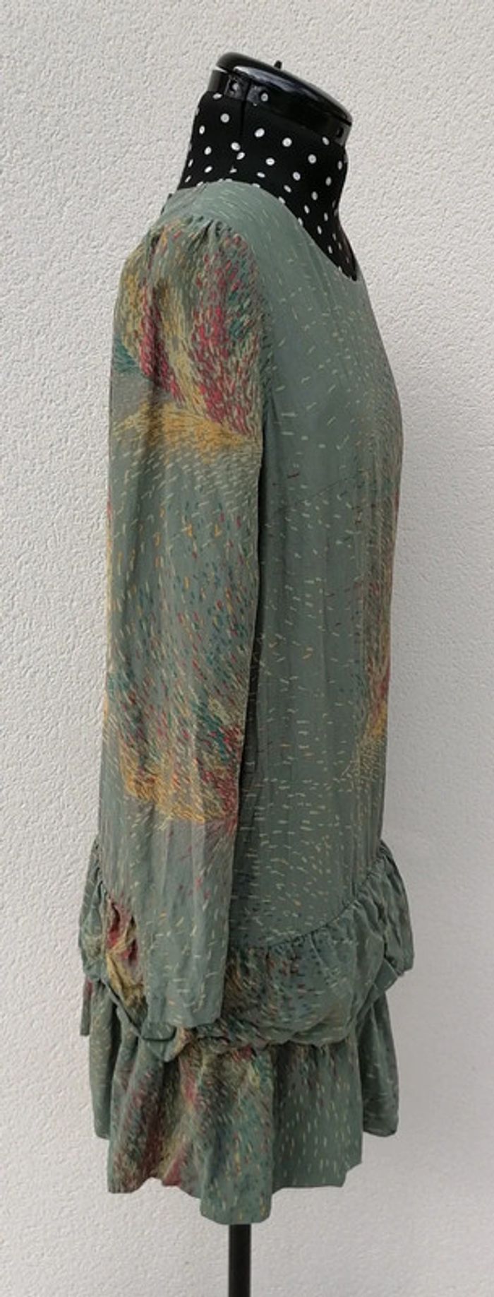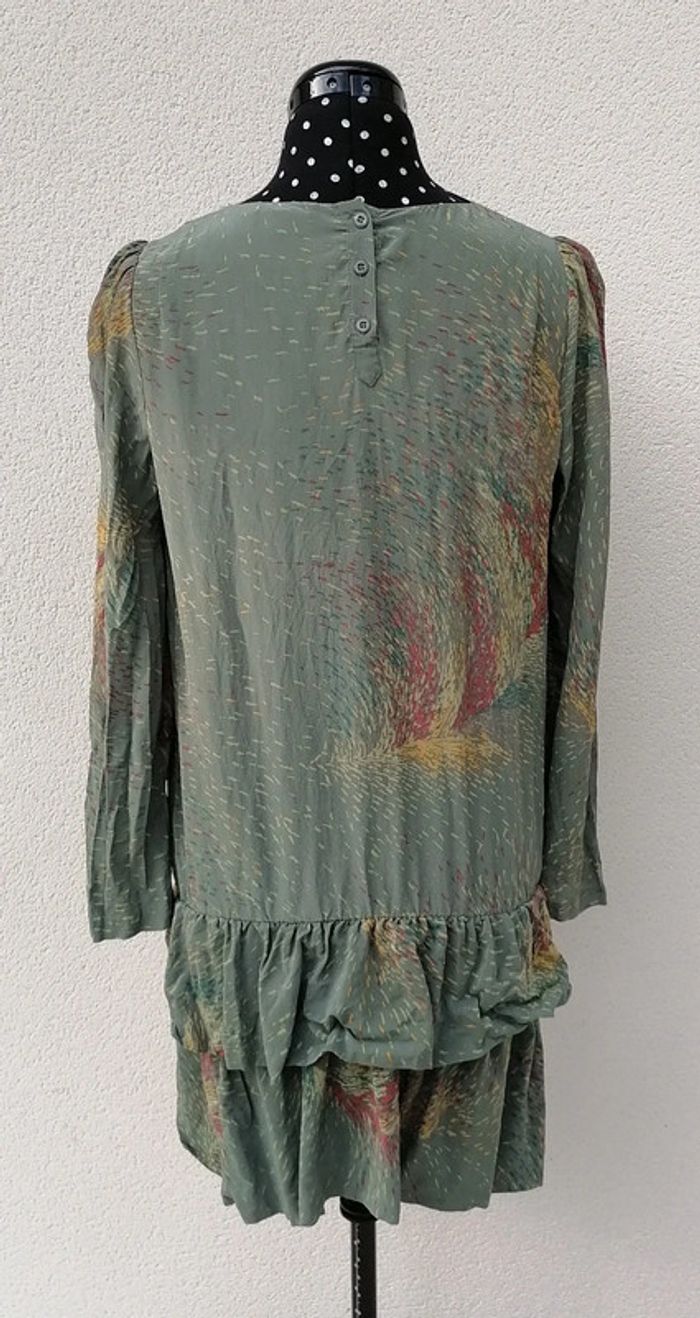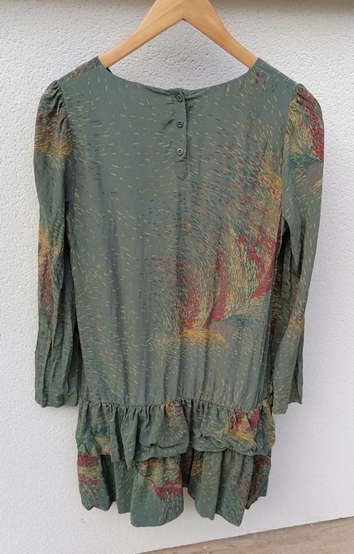 Robe courte 100% Soie kaki jaune rouge Taille M Bel Air - photo numéro 10